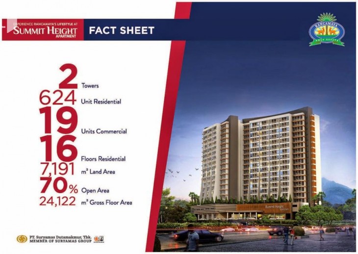Summit Height Apartment berada sekitar 200 meter dari gerbang utama Rancamaya. Desainnya modern dangan pemandangan pegunungan yang mengagumkan, yakni Gunung Salak, Gunung Pangrango, dan Gunung Gede, selain city light Kota Bogor.